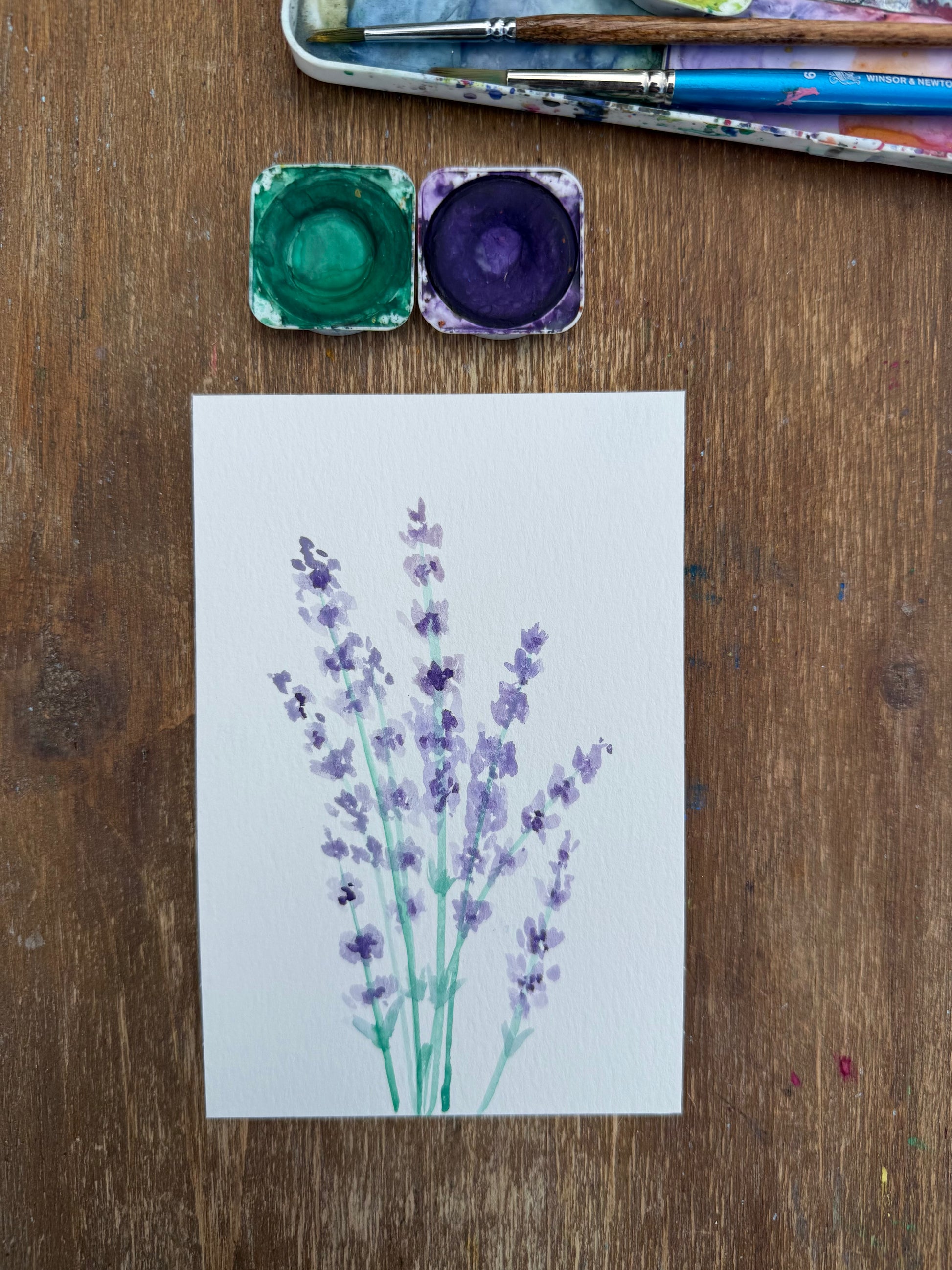Add a burst of floral fun to your collection with this playful watercolor print of lavender. Its soft, flowing colors capture the essence of fresh blooms, making it a delightful piece to share and brighten any space with a touch of nature’s charm. Perfect for those who love a splash of color and whimsy!