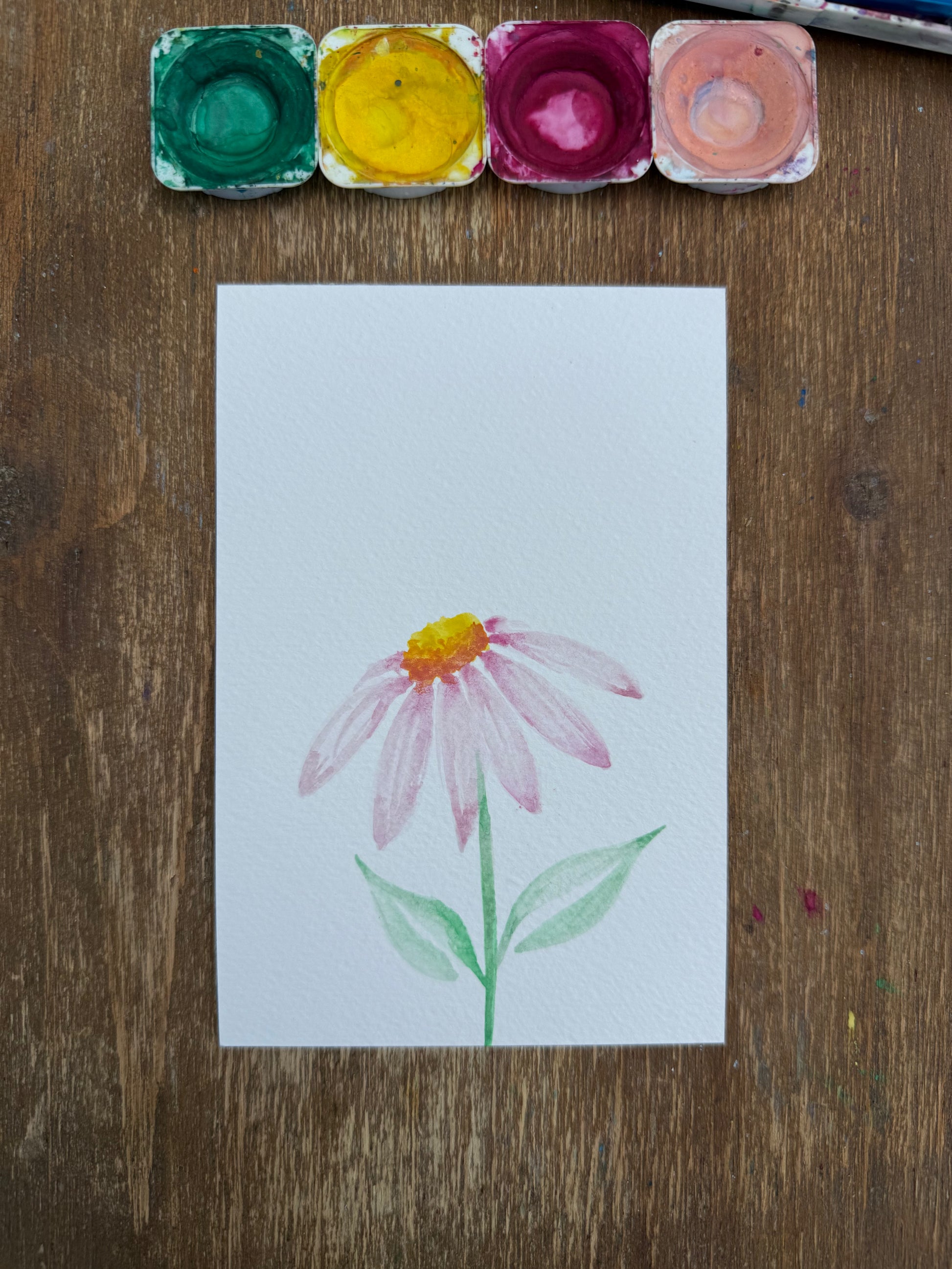 This original watercolor painting, Relaxed Flower, playfully blends soft colors and gentle brushstrokes to create a calming, joyful vibe. It’s a delightful way to add a splash of nature’s serenity to your space.
